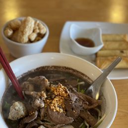 Get the boat noodles!! Insanely delicious! The sassy, bad ass sister of pho! Don't need to add anything. It's sweet, salty, spicy! Will be going back every weekend! Great and fast service!