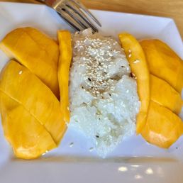 Indulge in the Black Sticky Rice Pudding or Mango Sticky Rice for a sweet finale to your meal, paired with a refreshing Thai Ice Tea or Coffee.